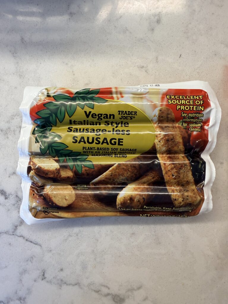 - Trader Joe’s Vegan Italian Style Sausage-less Sausage