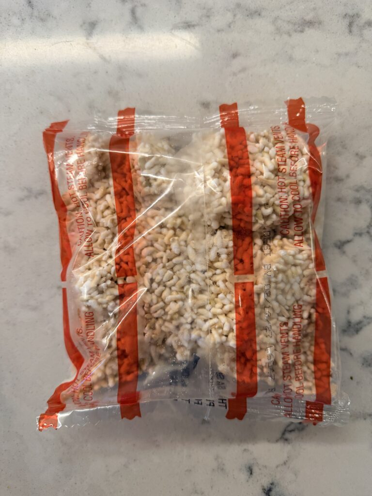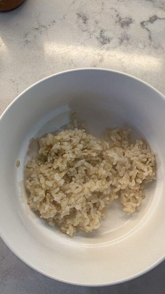 Add the frozen brown rice, cover, and heat on low to medium until soft but still slightly firm. - Cook the sausage