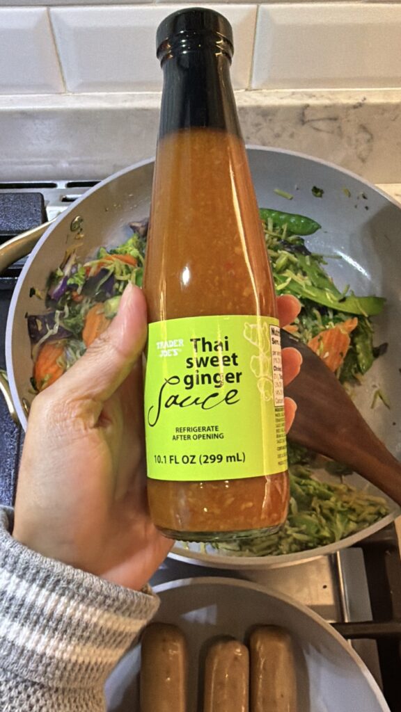 - Teriyaki or soy sauce if you don’t have Thai ginger sauce